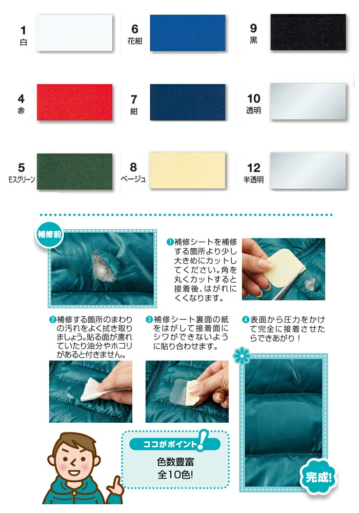 ナイロン素材のカギザキ・すり切れ・穴あきなどの補修・補強に シールタイプ