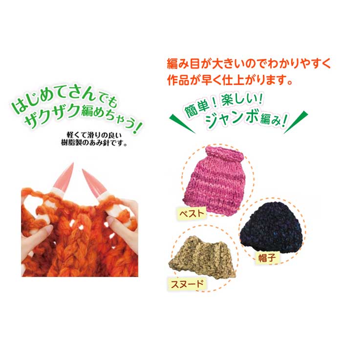 クローバー Clover ザクザク編めるジャンボ編み 棒針 太針 小物 帽子