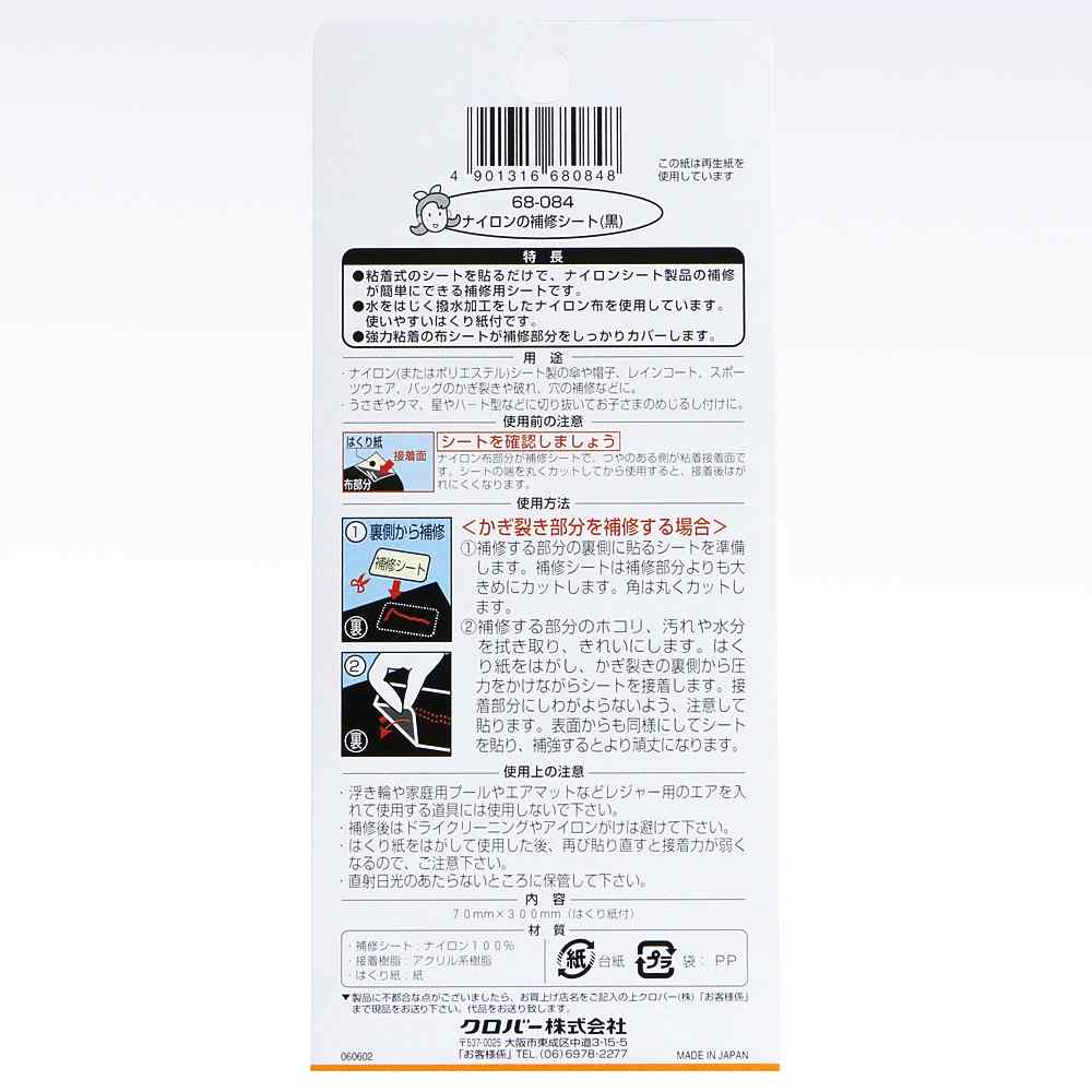 ナイロン製品の補修が貼るだけでできる粘着式ナイロン布製シート。めじるし付けにも使用できます。