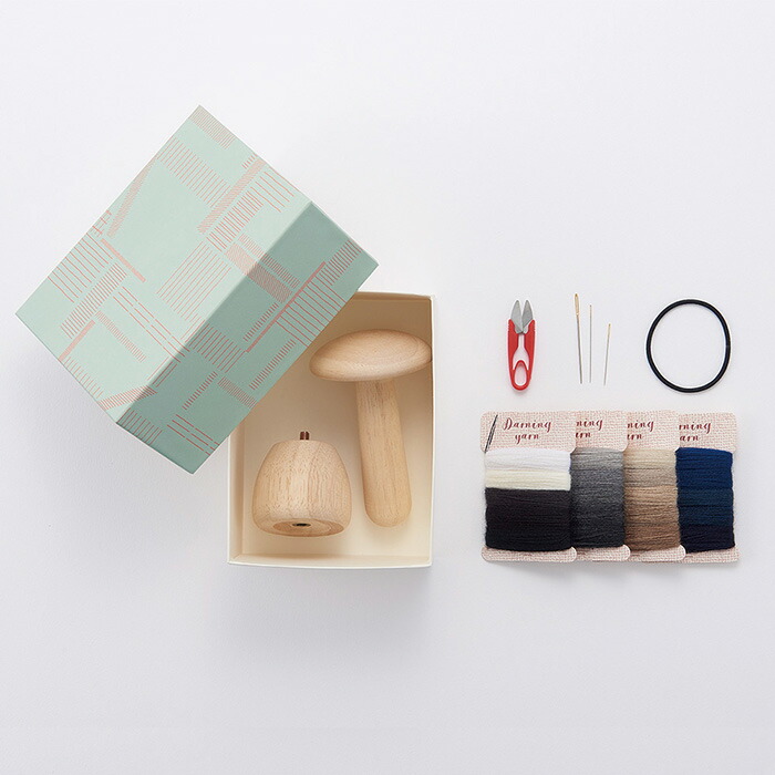 ダーニングに必要な道具と糸が、収納ボックスに入ったギフトにもピッタリなセット