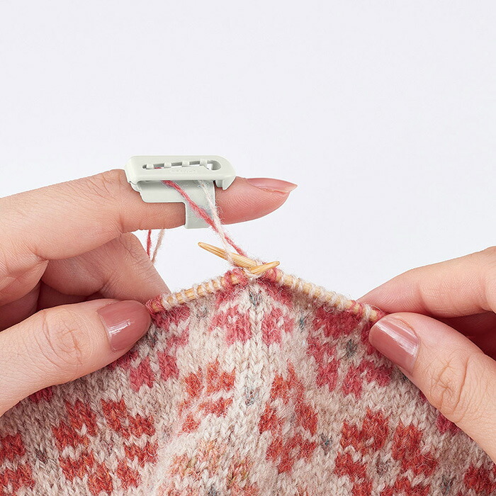 編み込み(横糸渡し)、リバーシブル編みなど、2本以上の糸の編み分けに便利なリングです。