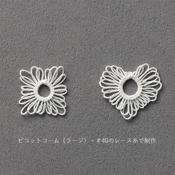 タティングレースのピコットの大きさを揃えて作れるNEWアイテムです。