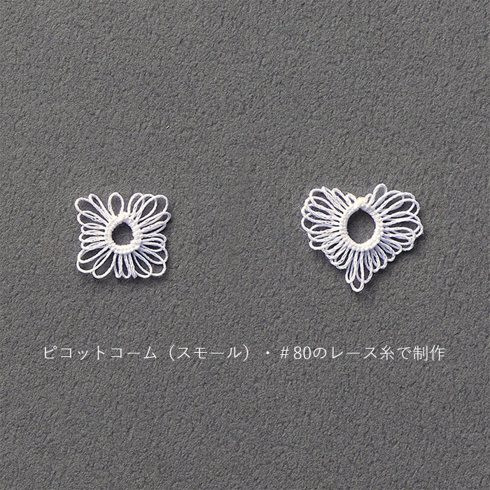 使用する糸の太さに合わせてピコットコームをお選びください。(スモール)は細めのレース糸(#60~#100)です。