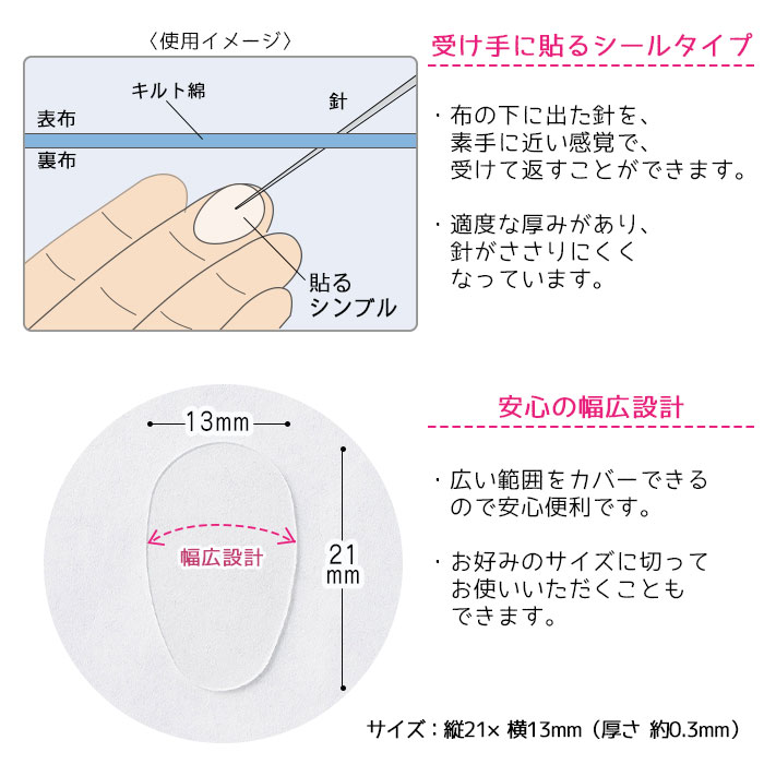 適度な厚みがあり、針が指に刺さりにくくなっています。
