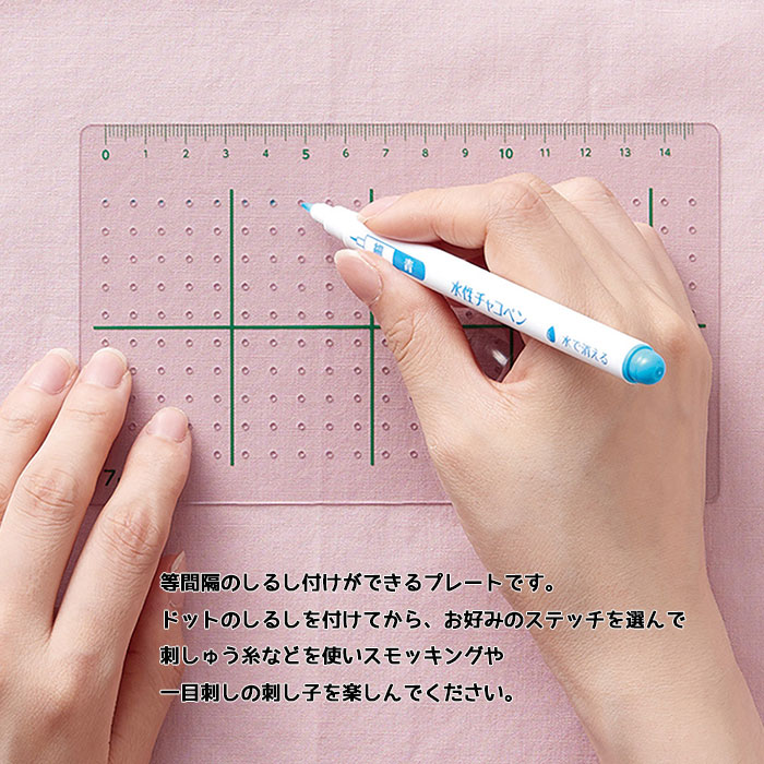 スモッキングのステッチ前に正確なしるしを付けるプレート。