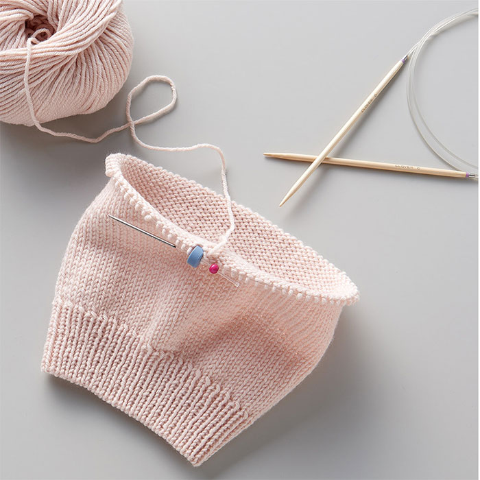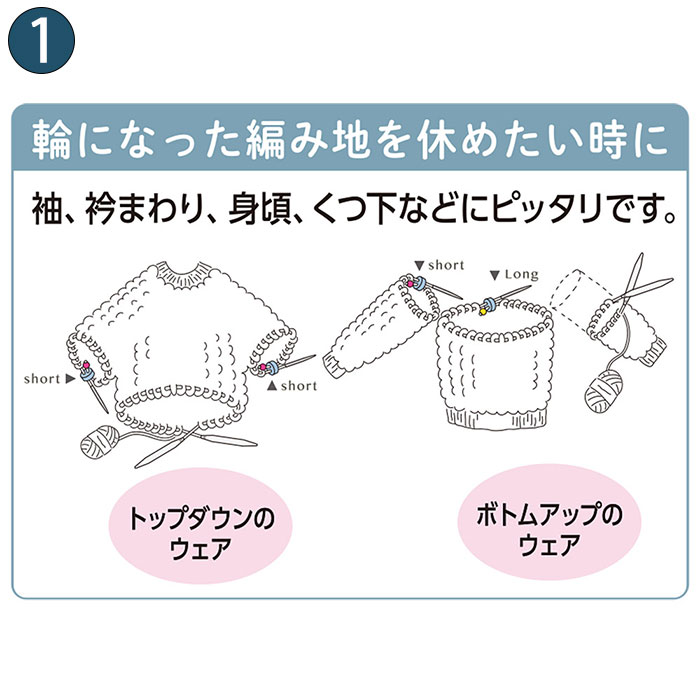 袖、衿まわり、身頃、くつ下など、輪になった編み目を休めるときに使います。