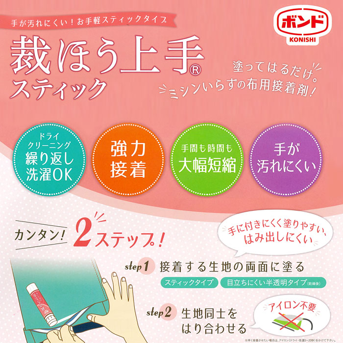 針・糸のいらないハンドメイド 補修・裾上げにも 裁ほう上手 コニシボンド 裁縫上手 スティックタイプ