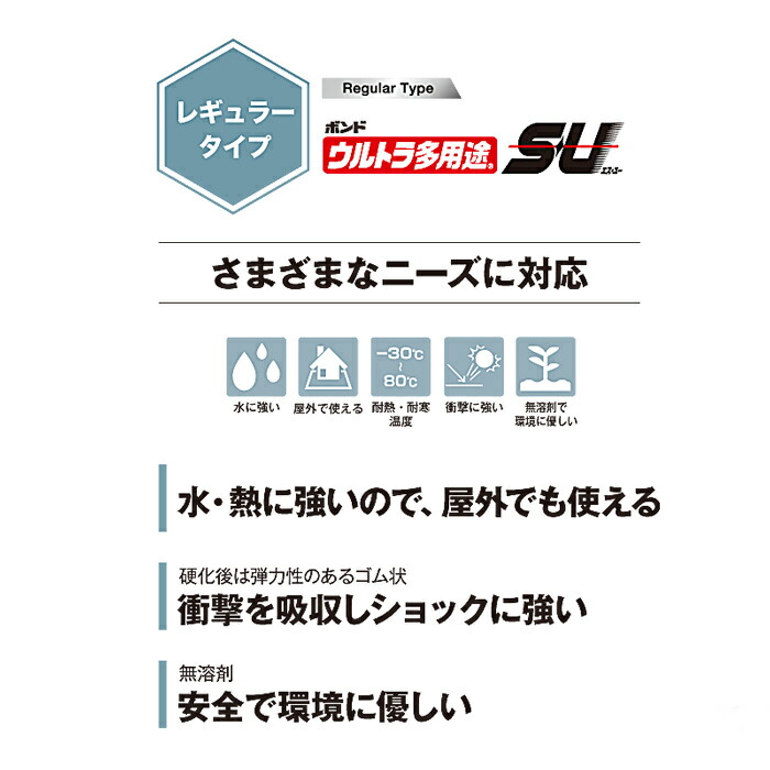 屋内、屋外、凹凸面、水回りでの接着と補修に。
