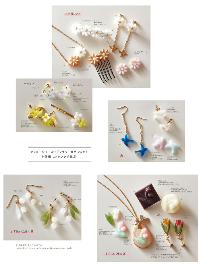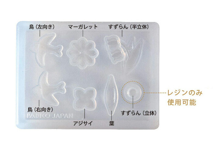 PADICO すずらん(立体・半立体)、葉、マーガレット、アジサイ、鳥がつくれる「フラワー」のシリコーンモールド。レジン・粘土可