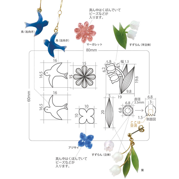 ・レジン・粘土用のモールド(立体すずらんはレジンのみ制作可能)
