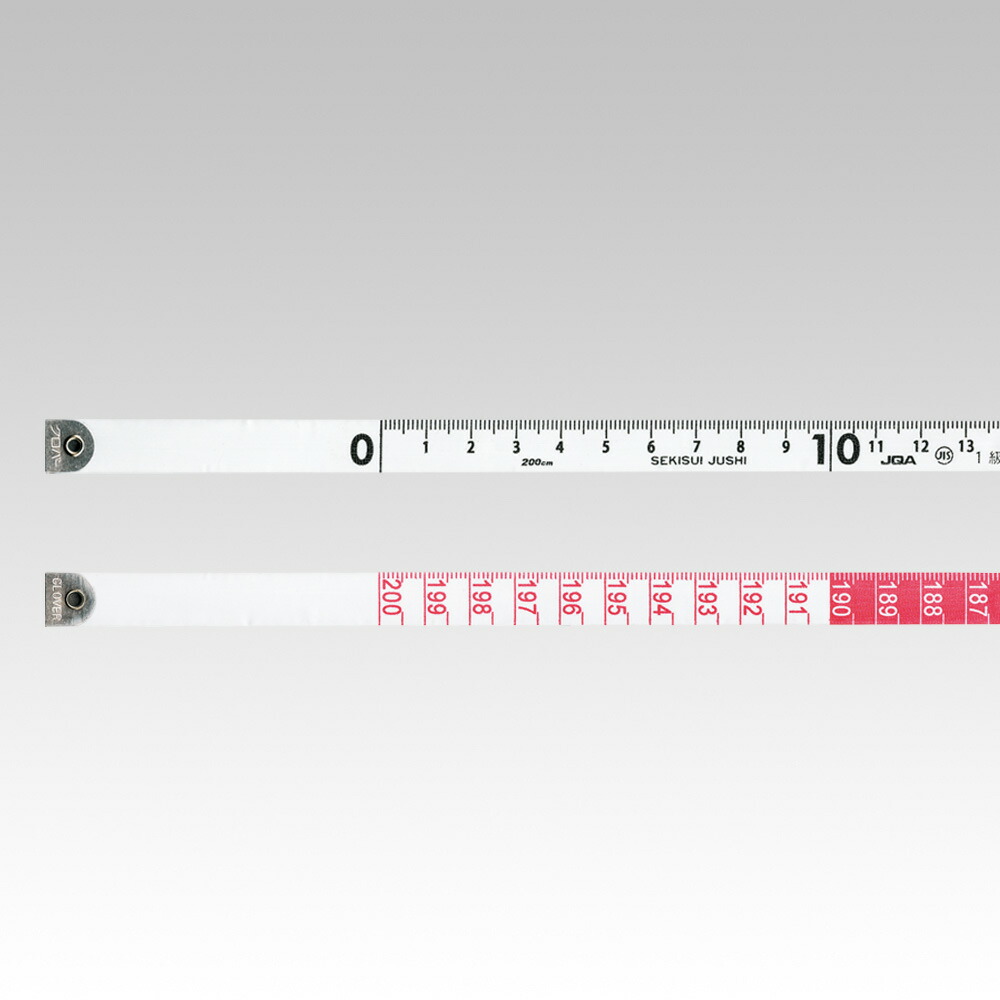 片面は10cmごとの色分けでどちらの端からでも使える便利な表裏逆進行目盛です。