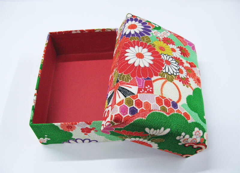 華やかな着物柄のお裁縫箱。お持ちの手芸用品をいれてお裁縫箱として、またアクセサリーやはがきなど文庫としてもご使用頂けます。