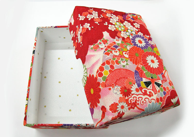 華やかな着物柄のお裁縫箱。お持ちの手芸用品をいれてお裁縫箱として、また着物の小物入れとしてご使用頂けます。