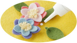 ■用途:フェルトモチーフの貼りつけ・ウール地などボンドがしみ込みやすい布地に乾くと透明・洗濯OK・ソフトな仕上がり。