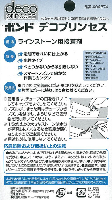 04874 ラインストーン用接着剤 デコプリンセス 小さなパーツの接着に デコ電 細口ノズル